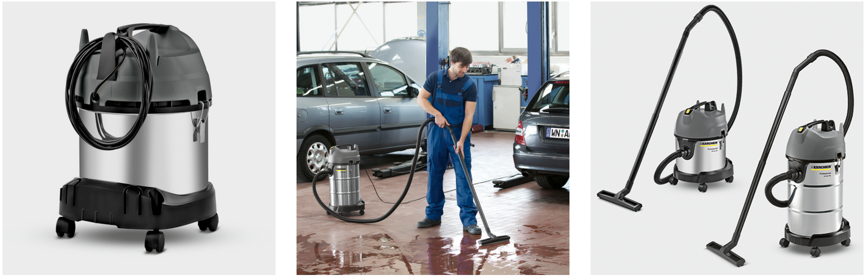 The Kärcher NT 20/1 Me Classic is a compact, powerful 1,500W wet and dry vacuum with a durable 20L stainless steel container, robust filter system, and easy maintenance design — ideal for professional or everyday cleaning of liquids, coarse debris, and dust.
