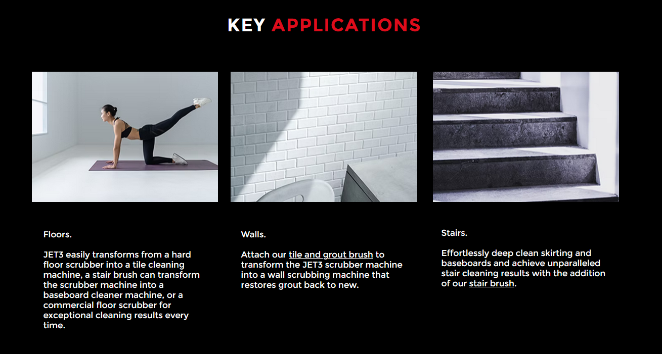 Whether you need to clean floors, tiles, grout, or even carpets, the JET3 is an all-in-one machine that delivers exceptional results. Its advanced technology ensures deep cleaning with ease, removing even the toughest stains and dirt. This makes the JET3 not just a floor scrubber but a multi-functional cleaning tool that can handle a variety of tasks with precision.