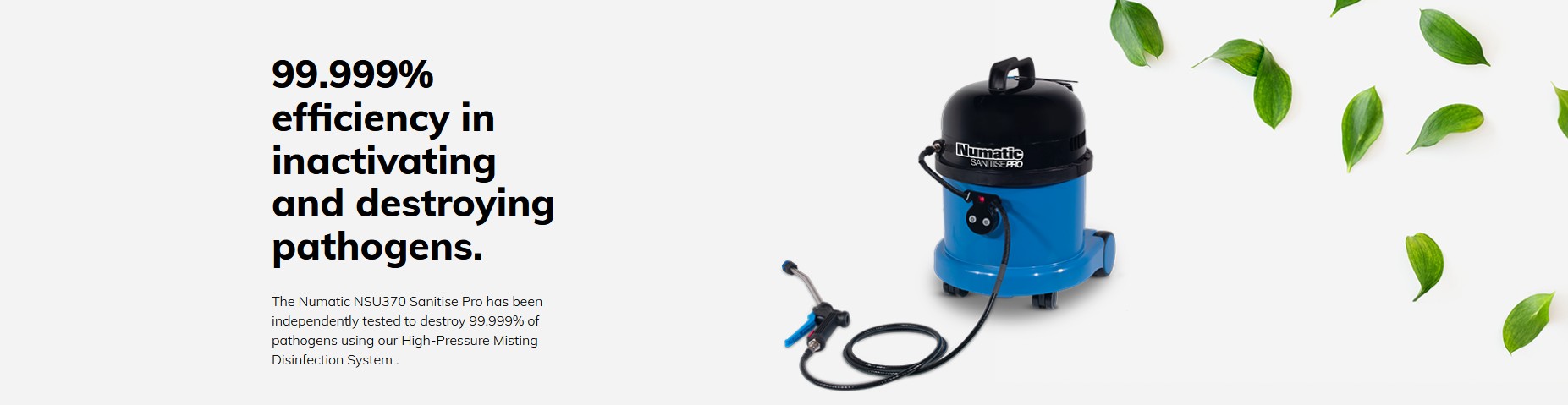 The Numatic NSU370 Sanitise Pro Disinfectant Sprayer delivers 99.999% pathogen elimination using powerful high-pressure misting technology. Fast-drying, reliable, and built for commercial use, it provides complete surface disinfection in minutes when used with TECcare Control.