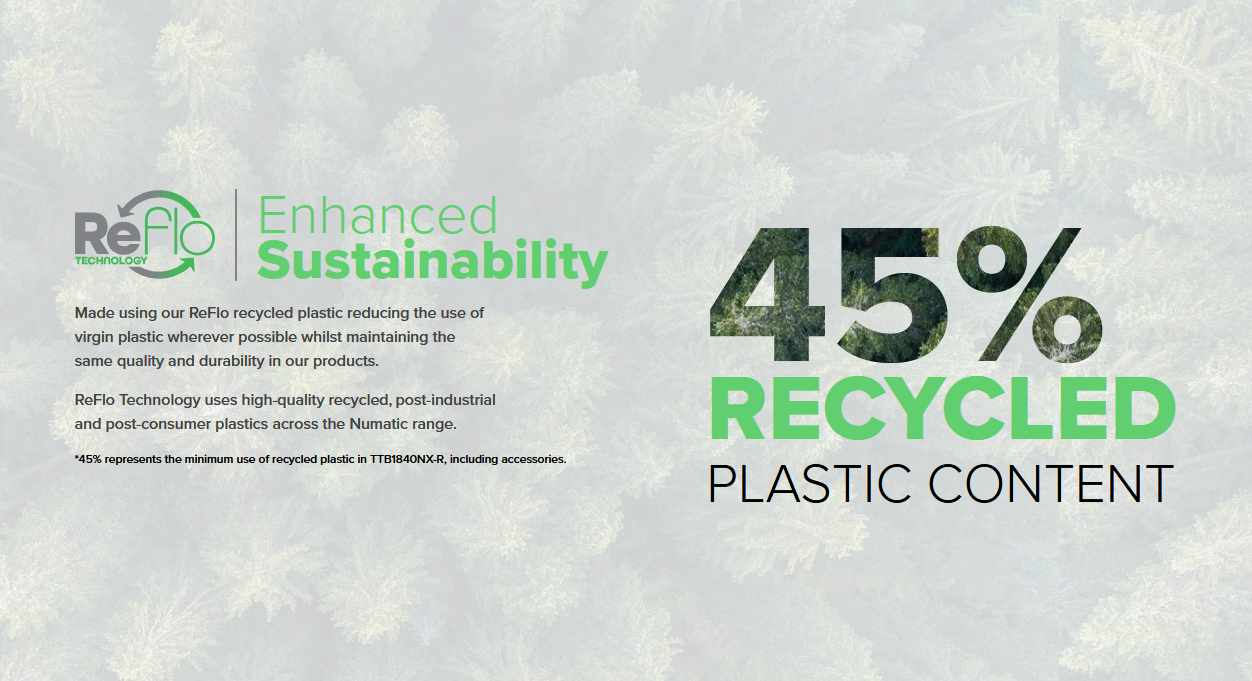 - Built with 45% recycled plastic using ReFlo Technology—eco-conscious without compromise.