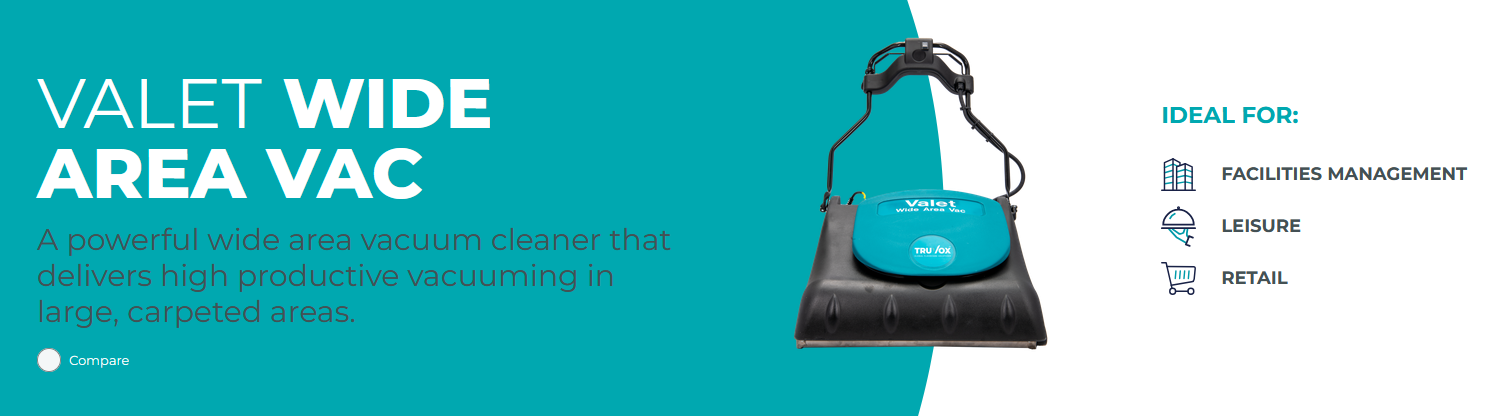 The Valet Wide Area Vac is a powerful, high-performance vacuum cleaner designed to maximise productivity in large, carpeted environments. Built for efficiency and reliability, it delivers outstanding cleaning results across offices, hotels, airports, conference centres, and other high-traffic areas.