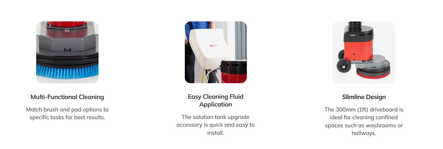 Whether you need to clean tile, vinyl, concrete, or carpet, the Sprite 300 offers reliable, effective performance in a compact and easy-to-use format—making it the perfect all-in-one cleaning solution for space-conscious environments.